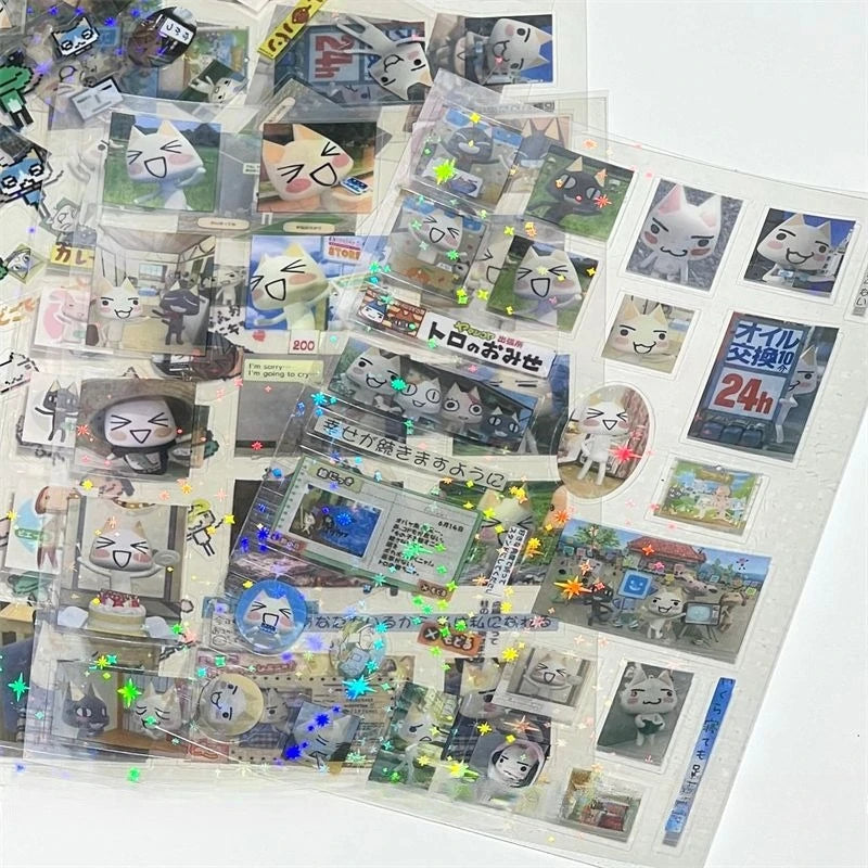 Transform your space with these enchanting Cartoon Doro Cat Cut Film Stickers featuring a laser star design. The double transparent film construction creates a stunning layered effect that catches light beautifully. Perfect for decorating laptops, windows, water bottles, or any smooth surface, these stickers add a whimsical touch to your everyday items. The transparent quality allows them to blend seamlessly with any background while the intricate cat and star details stand out. Easy to apply and remove without residue, they're ideal for personalizing your belongings with adorable anime-inspired charm.