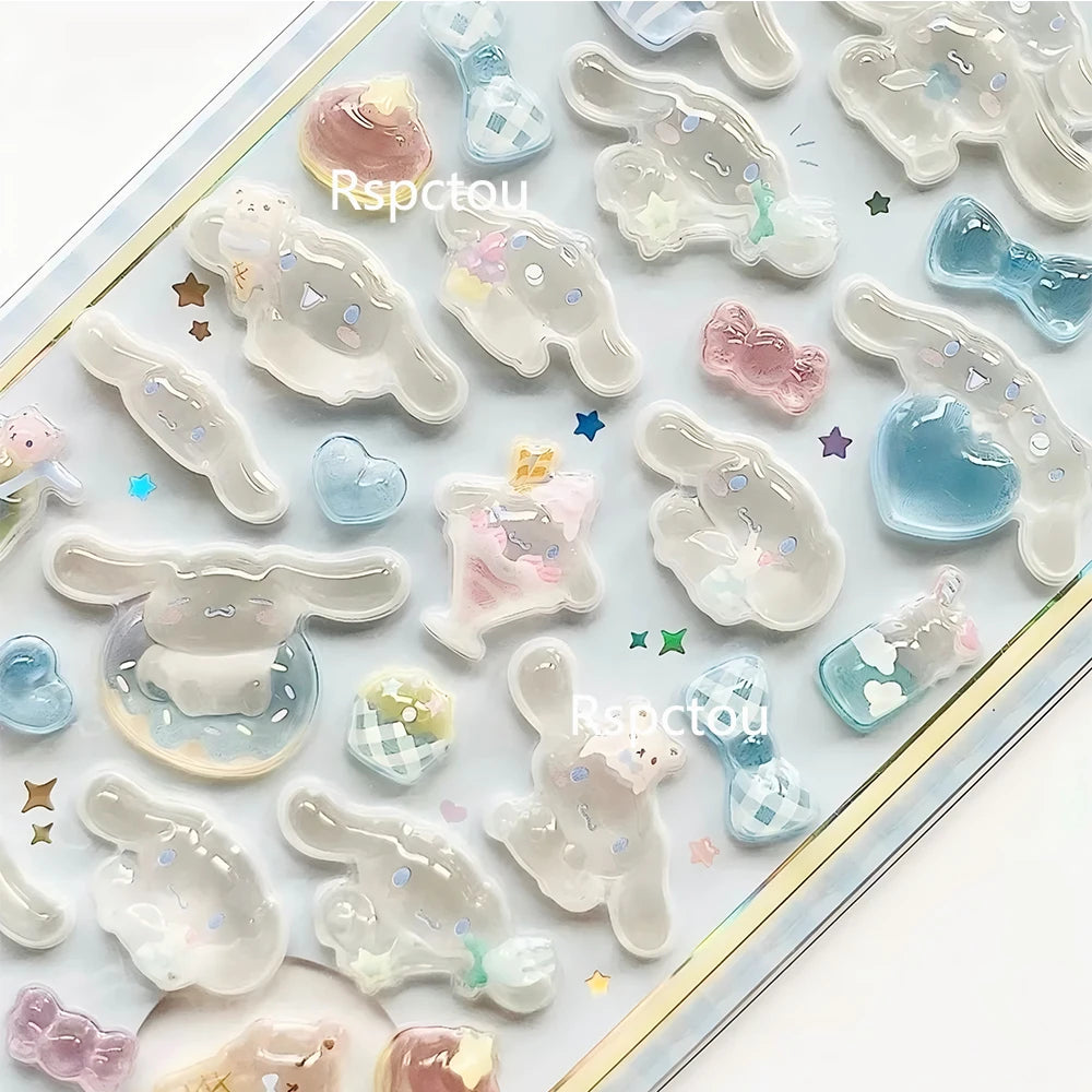 Cute Anime 3D Sanrio Stickers Transparent Jelly Crystal Decorative Sticker
